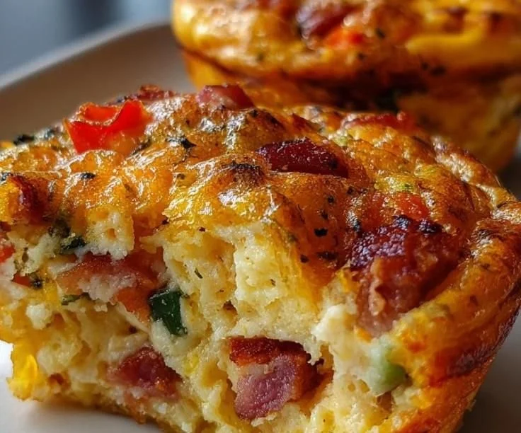 - Pour the egg mixture evenly into the prepared muffin cups, filling each about two-thirds full.