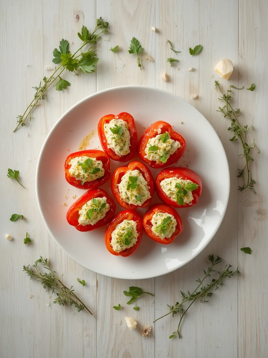 Yes. Mini bell peppers are ideal for sweetness and size; you can use shishito or Anaheim strips, or halved jalapeños if you prefer more heat. For the filling, you can use Neufchâtel for a lighter texture, ricotta blended with cream cheese for extra fluff, dairy-free cream cheese for vegan, or add crumbled feta/goat cheese for tang. Flavor swaps include cooked bacon, crab, pesto, sun-dried tomatoes, or olives; if adding mix-ins, pat them dry to prevent a watery filling.
