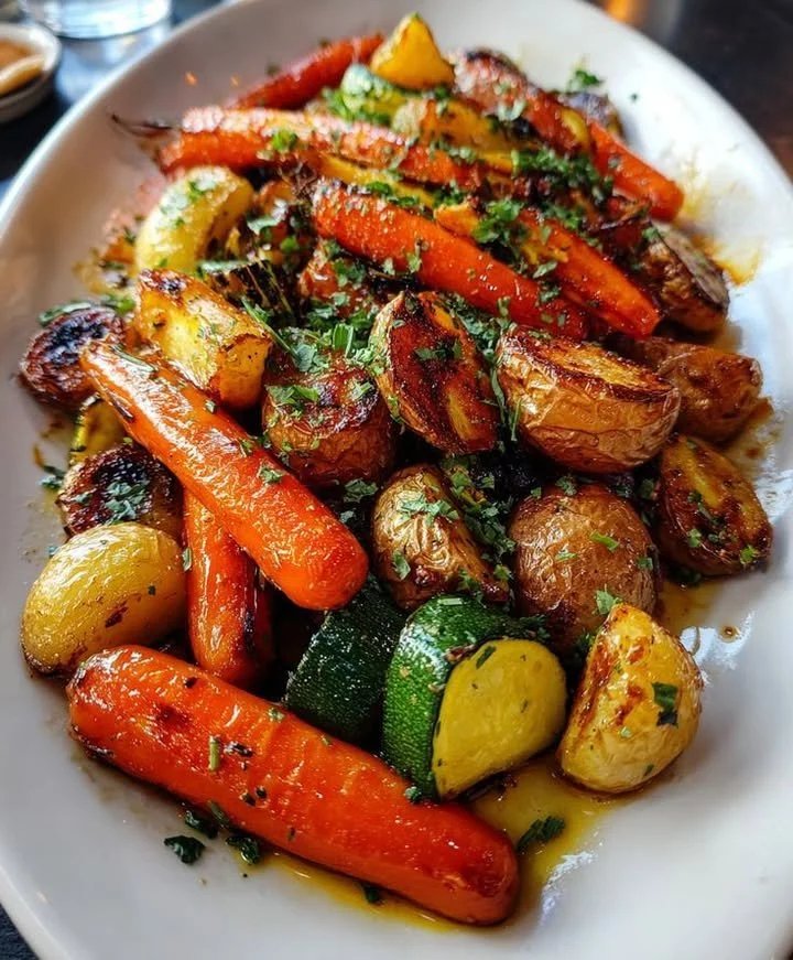 How to Serve Crispy Garlic Herb Roasted Potatoes, Carrots, and Zucchini