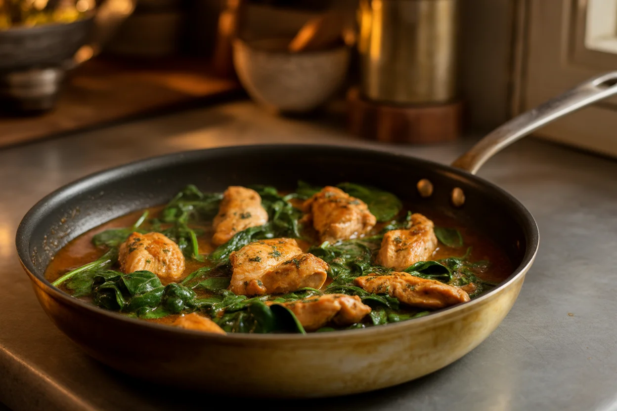 A few quick ingredient notes from my kitchen to yours. Thighs are forgiving and stay juicy, but breasts work beautifully if you do not overcook them. Sun dried tomatoes bring a sweet tang that balances the cream. Fresh spinach wilts right into the sauce. A squeeze of lemon at the end wakes everything up.