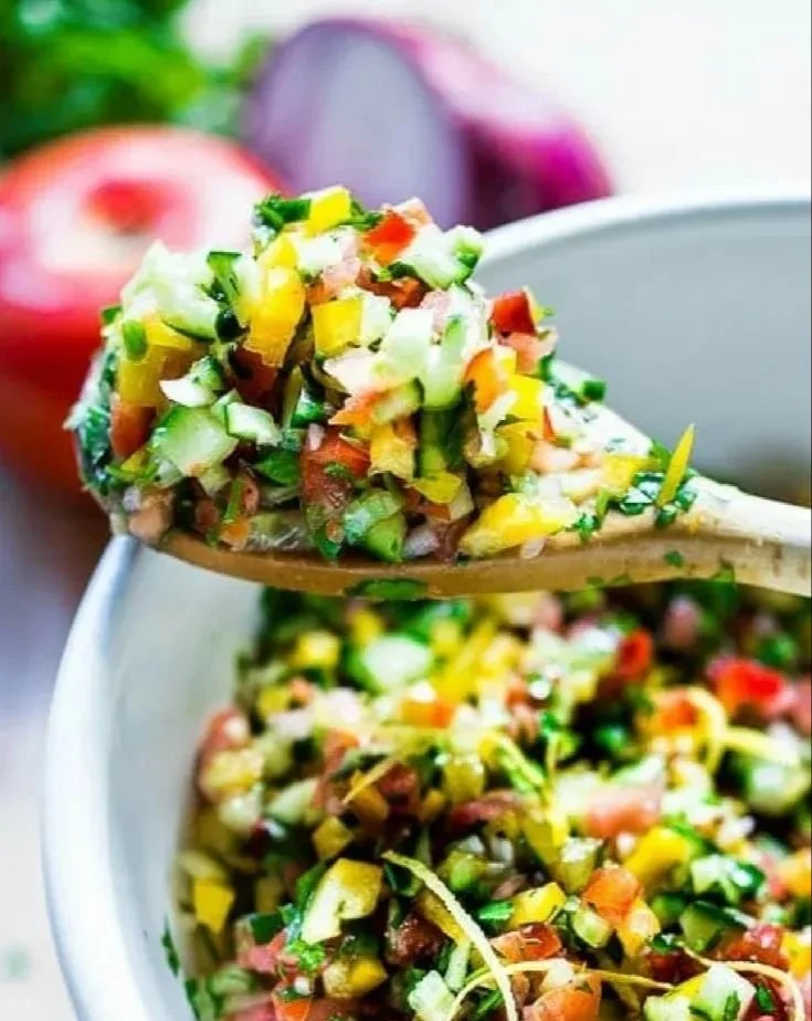 🌱 Light and Versatile: Perfect as a side dish or a light meal, Israeli Salad can be customized to suit your taste—add chickpeas or feta for extra nutrition and flavor!