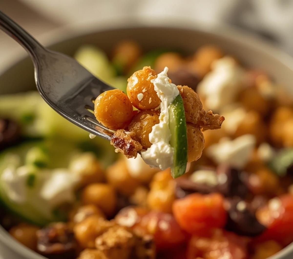 This bowl is a perfect example of how satisfying a meal can be when it’s built on whole foods. The chickpeas provide plant-based protein and fiber, which keeps you feeling full and supports steady energy, a core principle of any roasted chickpea salad. It’s a wonderful choice for anyone exploring a feta cheese bowl or seeking a vegetarian Greek salad that doesn’t skimp on flavor.