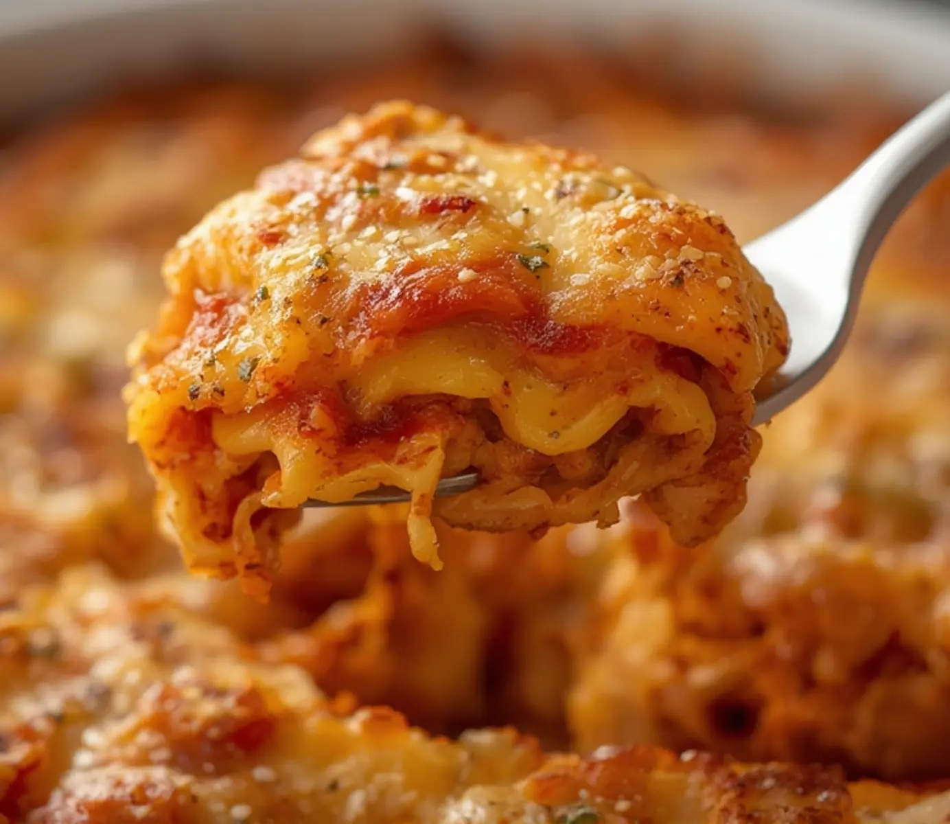 To reheat, place individual portions in an oven-safe dish and warm in the air fryer at 350°F for about 5 to 7 minutes. This method restores the crispy cheese topping better than a microwave.